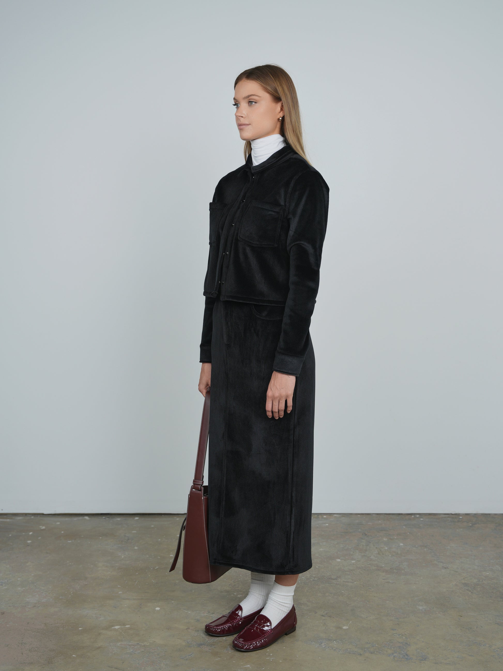 Ribbed Velour Maxi Skirt